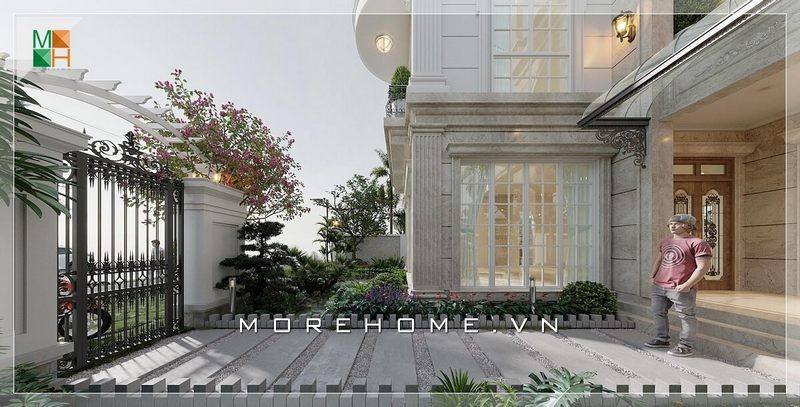 Thiết kế biệt thự, nhà phố với cổng rộng và khoảng sân trước nhà đẹp độc đáo là ý tưởng tuyệt vời đáng để lựa chọn.