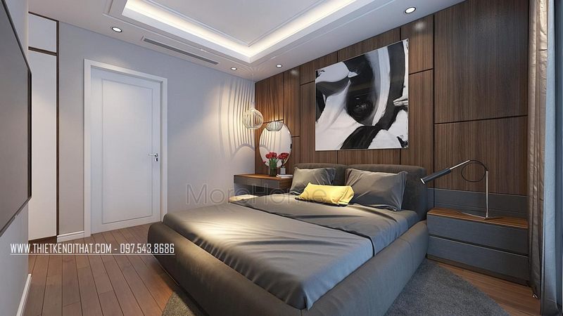 Thiết kế phòng ngủ master cho biệt thự, nhà phố theo phong cách hiện đại, bố trí gương hoa trang trí chính diện hợp phòng thủy