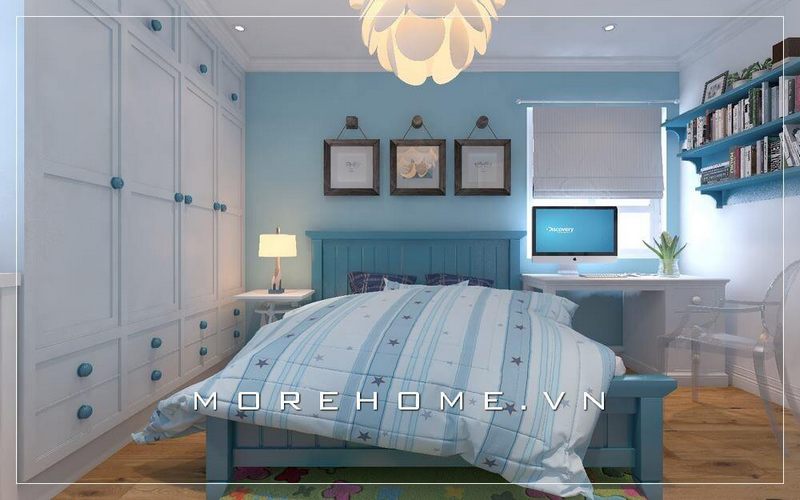 Mẫu thiết kế phòng ngủ bé trai hiện đại, nội thất bằng gỗ công nghiệp tinh tế là sự lựa chọn hoàn hảo cho phòng ngủ diện tích nhỏ