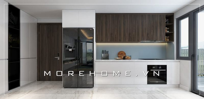 Các nguyên tắc thiết kế cơ bản như bố trí hợp lý và sử dụng màu sắc sáng có thể giúp mở rộng cảm giác không gian. Thay vì chọn những chiếc tủ bếp cồng kềnh, bạn có thể xem xét việc sử dụng tủ bếp treo cao và các kệ mở, giúp tạo ra một không gian thoáng đãng hơn và dễ dàng tiếp cận các vật dụng cần thiết.